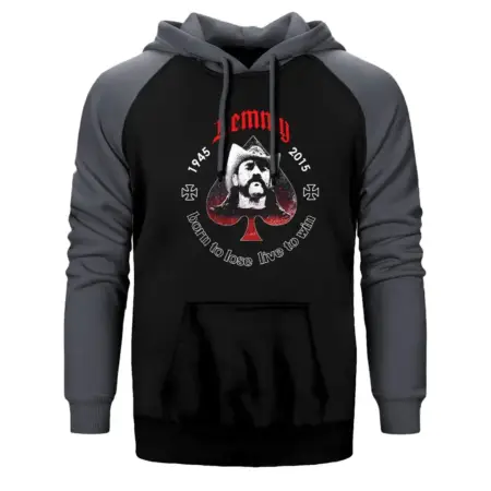 • Lemmy Hoodie, Double Color Raglan Sleeve Gray Sweatshirt