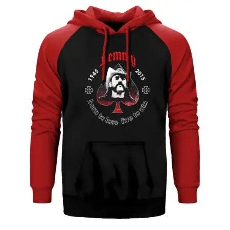 • Lemmy Hoodie, Double Color Raglan Sleeve Red Sweatshirt