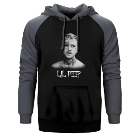 • Lil Peep Hoodie, Double Color Raglan Sleeve Gray Sweatshirt
