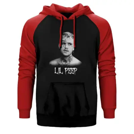• Lil Peep Hoodie, Double Color Raglan Sleeve Red Sweatshirt