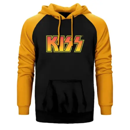 • Kiss Colored Hoodie, Double Color Raglan Sleeve Yellow Sweatshirt