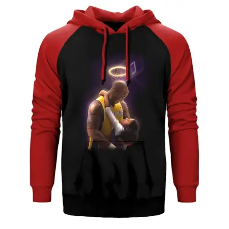 • Kobe Bryant Logo Hoodie, Double Color Raglan Sleeve Red Sweatshirt