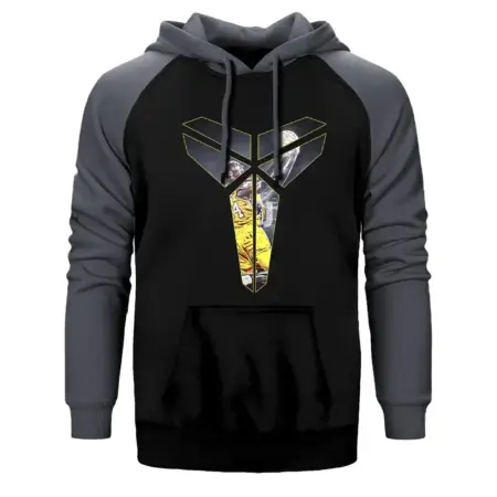 • Kobe Bryant Logo Hoodie, Double Color Raglan Sleeve Gray Sweatshirt