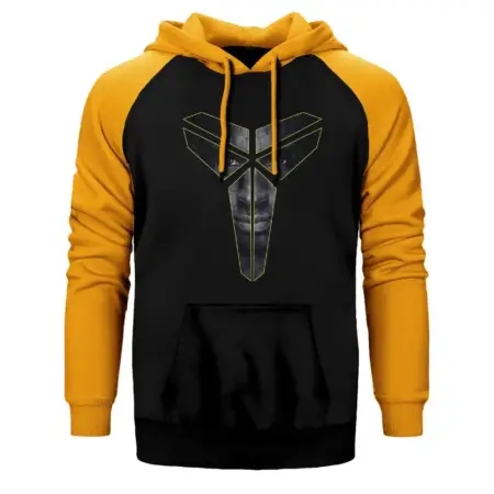 • Kobe Bryant Logo Hoodie, Double Color Raglan Sleeve Yellow Sweatshirt