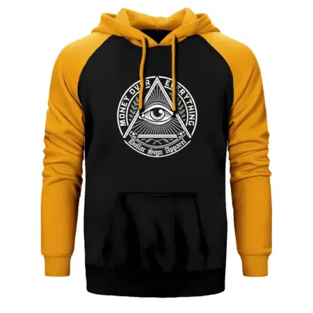 • Killuminati Money Hoodie, Double Color Raglan Sleeve Yellow Sweatshirt