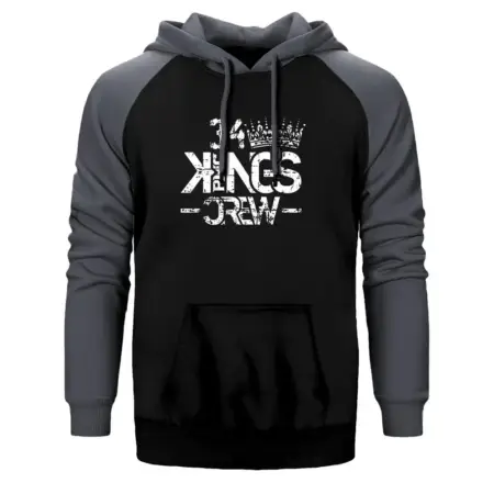 • King Crew PMC Hoodie, Double Color Raglan Sleeve Grey Sweatshirt