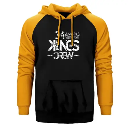 • King Crew PMC Hoodie, Double Color Raglan Sleeve Yellow Sweatshirt