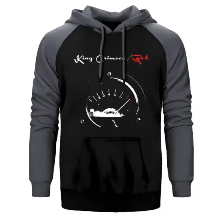 • King Crimson Red Hoodie, Double Color Raglan Sleeve Gray Sweatshirt