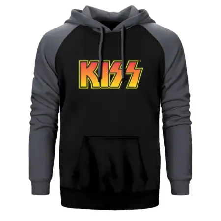 • Kiss Colored Hoodie, Double Color Raglan Sleeve Gray Sweatshirt