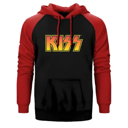 • Kiss Colored Hoodie, Double Color Raglan Sleeve Red Sweatshirt