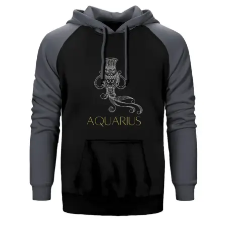 • Aquarius Zodiac Retro Hoodie, Double Color Raglan Sleeve Gray Sweatshirt