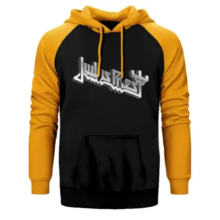 • Judas Priest Steel Hoodie, Double Color Raglan Sleeve Yellow Sweatshirt