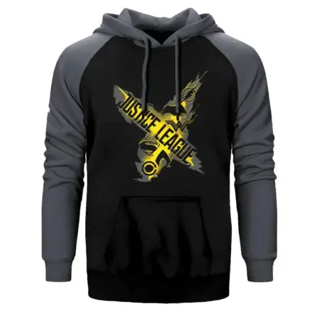 • Justice League Heroes Logo Hoodie, Double Color Raglan Sleeve Gray Sweatshirt