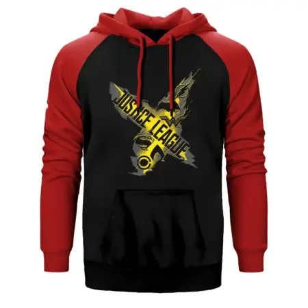 • Justice League Heroes Logo Hoodie, Double Color Raglan Sleeve Red Sweatshirt