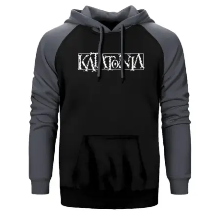 • Katatonia Logo Hoodie, Double Color Raglan Sleeve Gray Sweatshirt