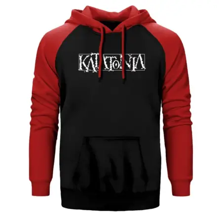 • Katatonia Logo Hoodie, Double Color Raglan Sleeve Red Sweatshirt