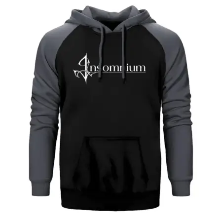 • Insomnium Logo Hoodie, Double Color Raglan Sleeve Gray Sweatshirt
