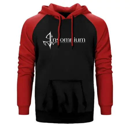 • Insomnium Logo Hoodie, Double Color Raglan Sleeve Red Sweatshirt