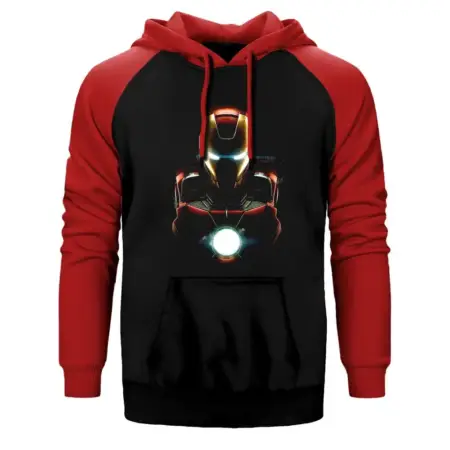 • Iron Man in the Dark Hoodie, Double Color Raglan Sleeve Red Sweatshirt
