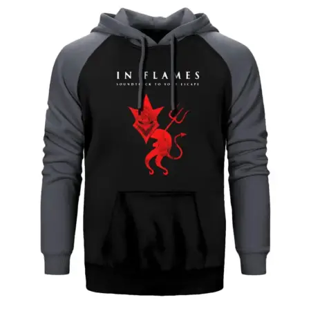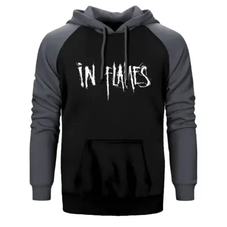 • In Flames Logo Hoodie, Double Color Raglan Sleeve Gray Sweatshirt