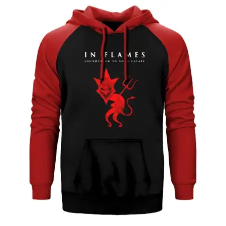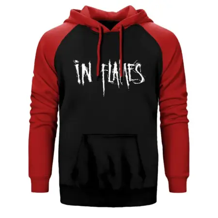 • In Flames Logo Hoodie, Double Color Raglan Sleeve Red Sweatshirt