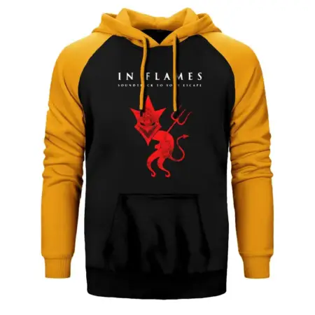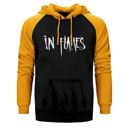 • In Flames Logo Hoodie, Double Color Raglan Sleeve Yellow Sweatshirt