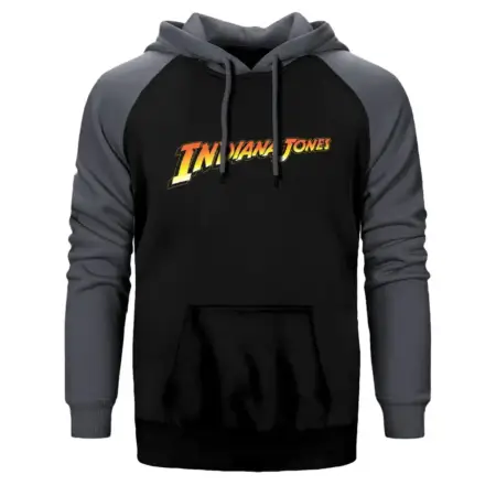 • Indiana Jones Hoodie, Double Color Raglan Sleeve Gray Sweatshirt