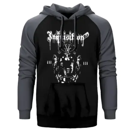 • Inquisition Hoodie, Double Color Raglan Sleeve Gray Sweatshirt