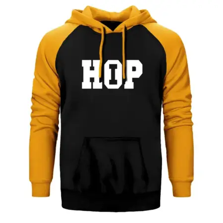 • Hip Hop Hoodie, Double Color Raglan Sleeve Yellow Sweatshirt