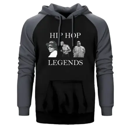 • Hip Hop Legends 2pac Biggie Eazy Hoodie, Double Color Raglan Sleeve Gray Sweatshirt