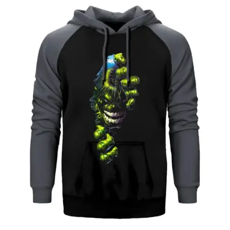 • Hulk Attack Hoodie, Double Color Raglan Sleeve Gray Sweatshirt