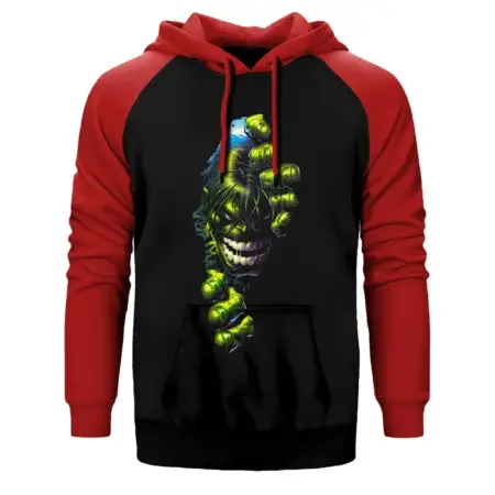 • Hulk Attack Hoodie, Double Color Raglan Sleeve Red Sweatshirt