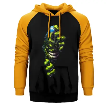 • Hulk Angry Hoodie, Double Color Raglan Sleeve Yellow Sweatshirt