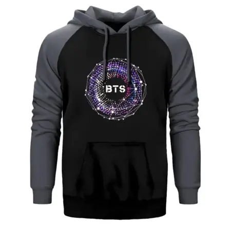 • BTS Circle Logo Hoodie, Double Color Raglan Sleeve Grey Sweatshirt