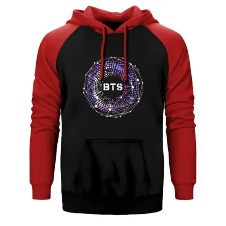 • BTS Circle Logo Hoodie, Double Color Raglan Sleeve Red Sweatshirt