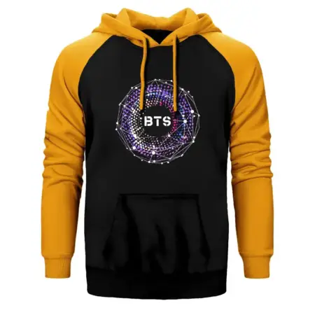 • BTS Circle Logo Hoodie, Double Color Raglan Sleeve Yellow Sweatshirt