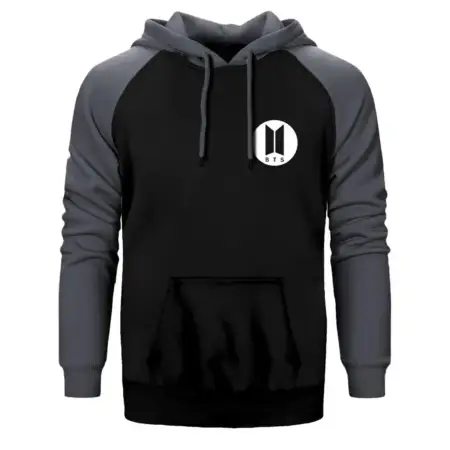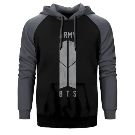 • BTS ARMY Logo Hoodie, Double Color Raglan Sleeve Grey Sweatshirt