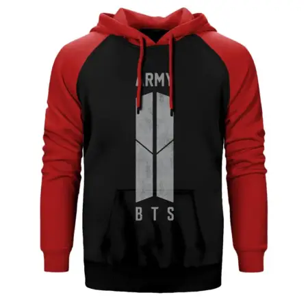 • BTS ARMY Logo Hoodie, Double Color Raglan Sleeve Red Sweatshirt