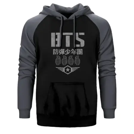 • BTS Grenades Hoodie, Double Color Raglan Sleeve Grey Sweatshirt