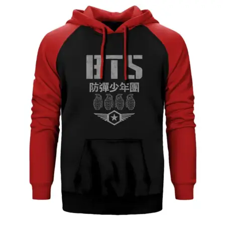 • BTS Grenades Hoodie, Double Color Raglan Sleeve Red Sweatshirt