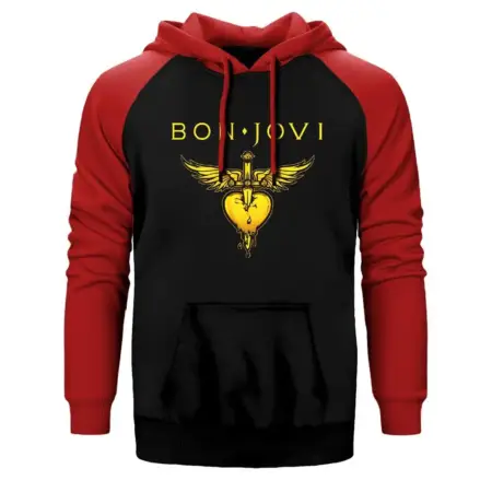 • Bon Jovi Gold Hearth Hoodie, Double Color Raglan Sleeve Red Sweatshirt