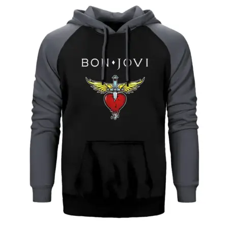 • Bon Jovi Hearth Hoodie, Double Color Raglan Sleeve Grey Sweatshirt
