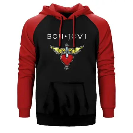• Bon Jovi Hearth Hoodie, Double Color Raglan Sleeve Red Sweatshirt