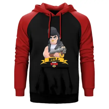 • Brawl Stars Bull Hoodie, Double Color Raglan Sleeve Red Sweatshirt