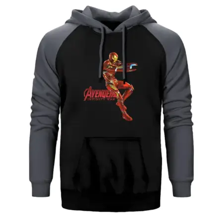 • Avengers Infinity War Iron Mad Grey Double Color Raglan Sleeve Hoodie Sweatshirt