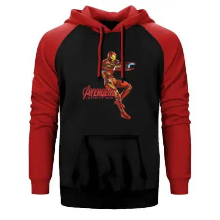 • Avengers Infinity War Iron Mad Red Double Color Raglan Sleeve Hoodie Sweatshirt