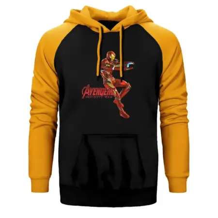 • Avengers Infinity War Iron Man Yellow Double Color Raglan Sleeve Hoodie Sweatshirt