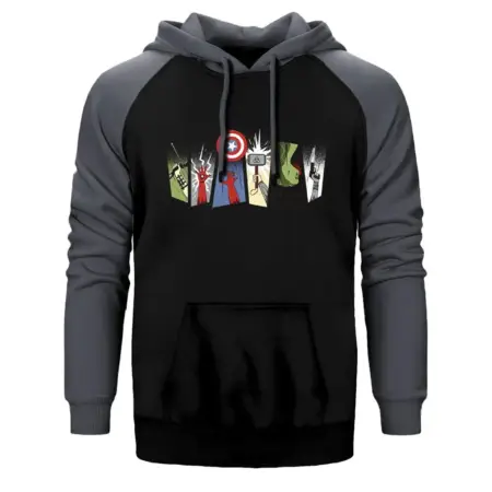 • Avengers Items Grey Double Color Raglan Sleeve Hoodie Sweatshirt