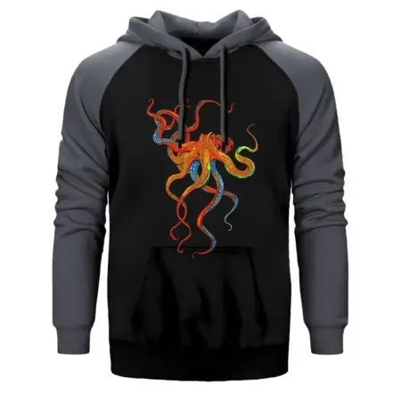 • Octopus Full Color Raglan Sleeve Grey Sweatshirt