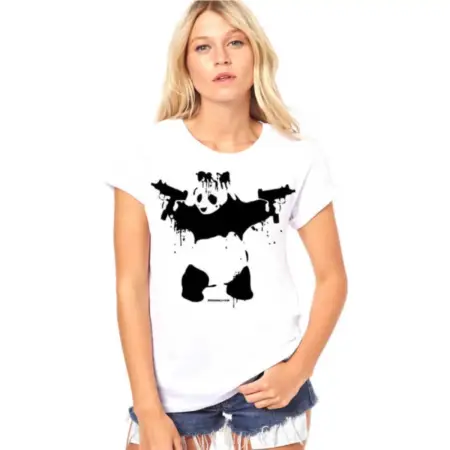 • Uzi Pistol Panda Short Sleeve Women’s White T-Shirt